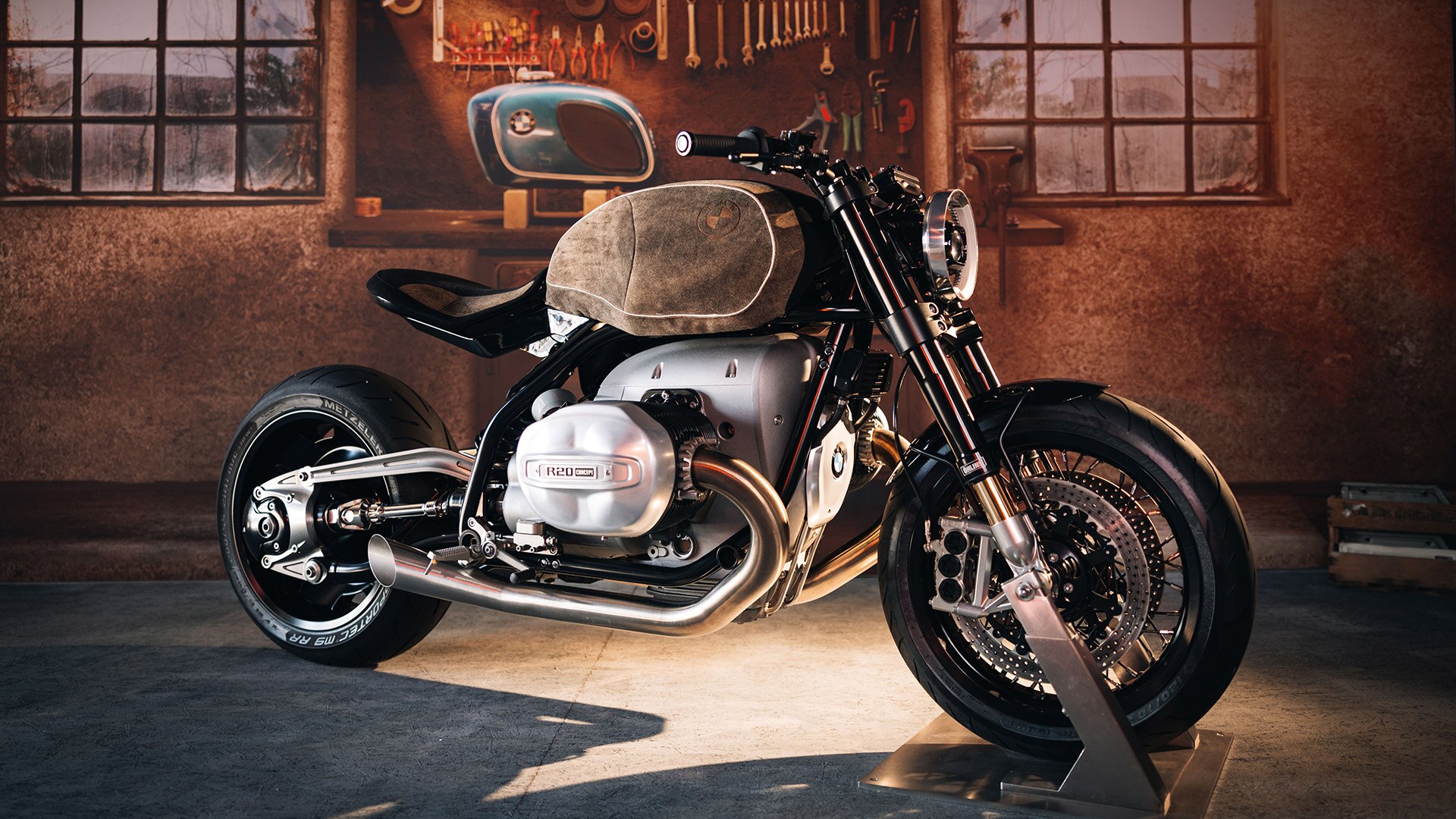 Das wohl spannendste Konzeptfahrzeug des Jahres durfte auf den BMW Motorrad Days nicht fehlen. Die BMW R20 concept erinnert mit ihrem kraftvollen Retro-Design an die legendären BMW Motorräder der 1930er Jahre, während sie gleichzeitig modernste Technik und zukunftsweisende Performance bietet. Passend zum Homecoming der BMW Motorrad Days nach Garmisch-Partenkirchen präsentierte sich die R20 concept in einem besonderen Gewand: Der Tank wurde – im Lederhosen-Look – mit Hirschleder von der Firma Meindl Fashion überzogen.